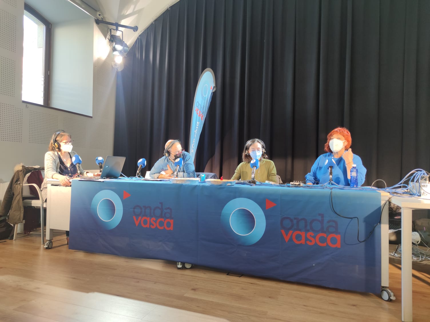 Imanol Arruti, Maider Uriarte, Kike Alonso, Esther Fernández y nuestros técnicos Gorka Prior, Javier Moreno y Rubén González hemos celebrado nuestro primer año de la nueva programación en directo desde Kulturate de Arrasate.