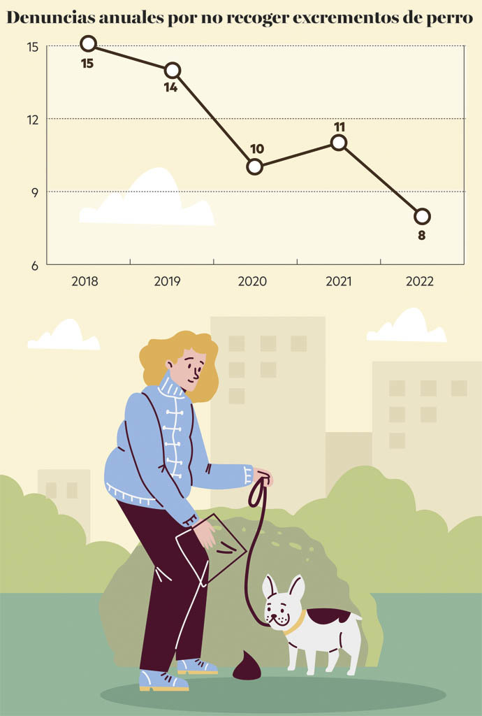 En lo que va de año en Pamplona se han tramitado 8 denuncias a propietarios de perros por este motivo. La multa es de 200 euros y está tipificada como infracción administrativa leve.