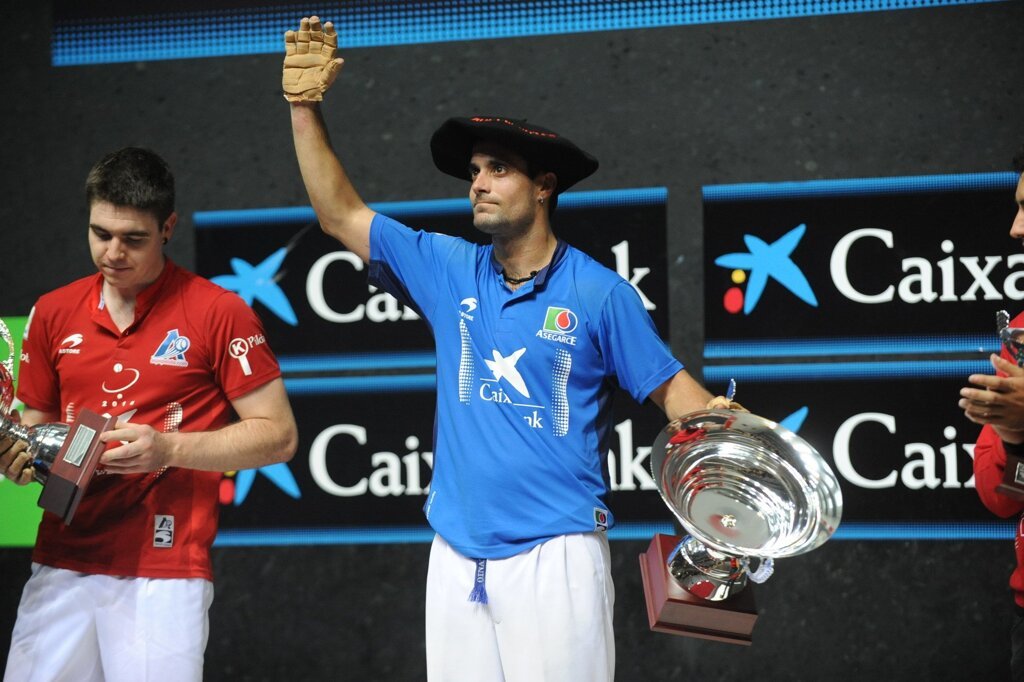 Oinatz, con la txapela y el trofeo de campeón ante Irribarria. Foto: José Mari Martínez