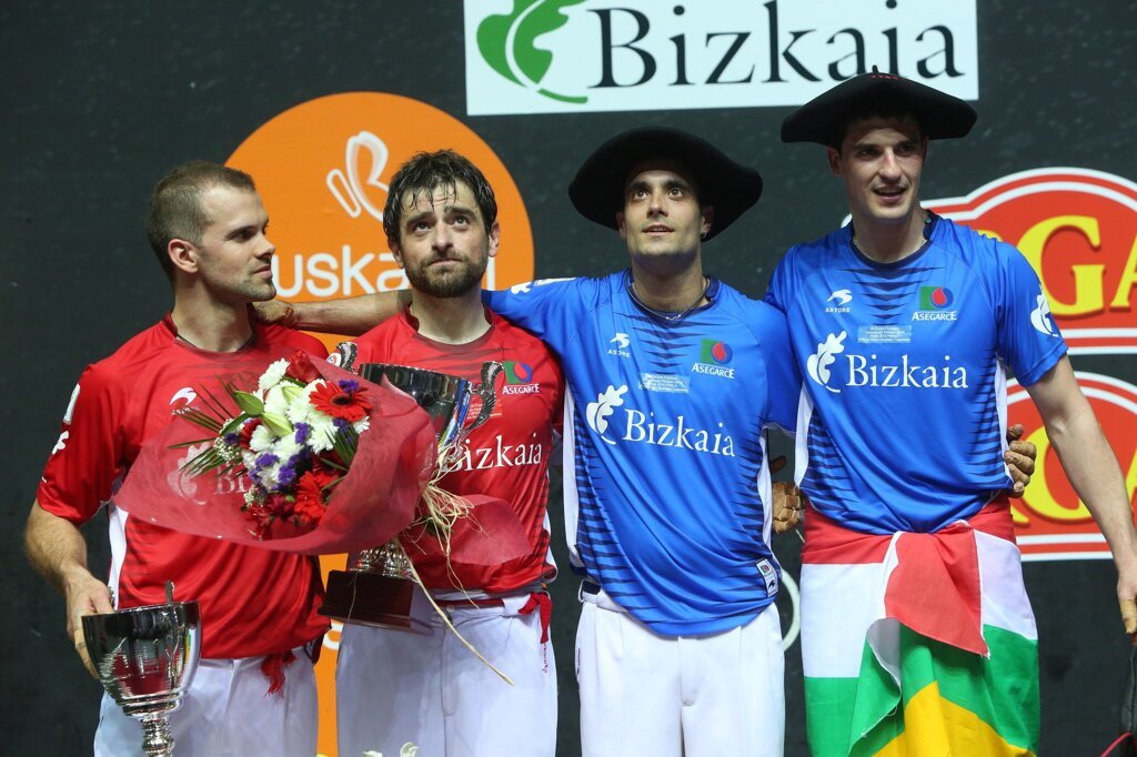 Zubieta, Berasaluze VIII, Bengoetxea VI y Untoria, en el podio del Parejas 2015. Foto: Oskar Martínez