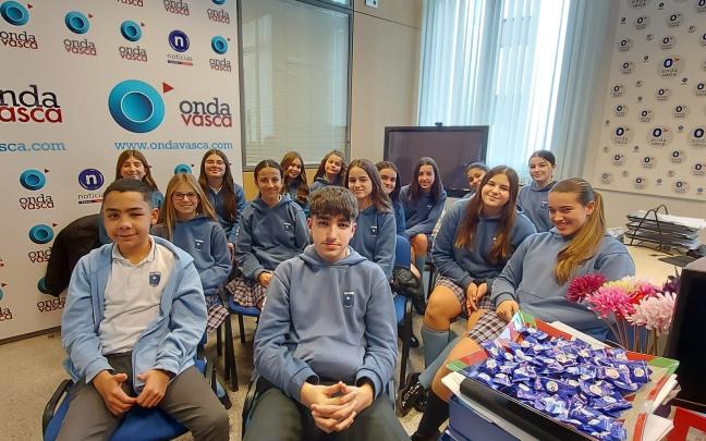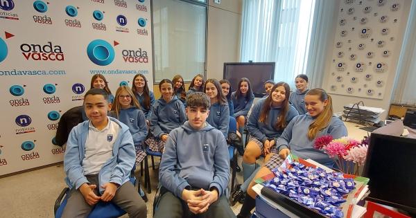 Estudiantes del colegio San José de Calasanz de Santurtzi inauguran los talleres contra la desinformación en Onda Vasca
