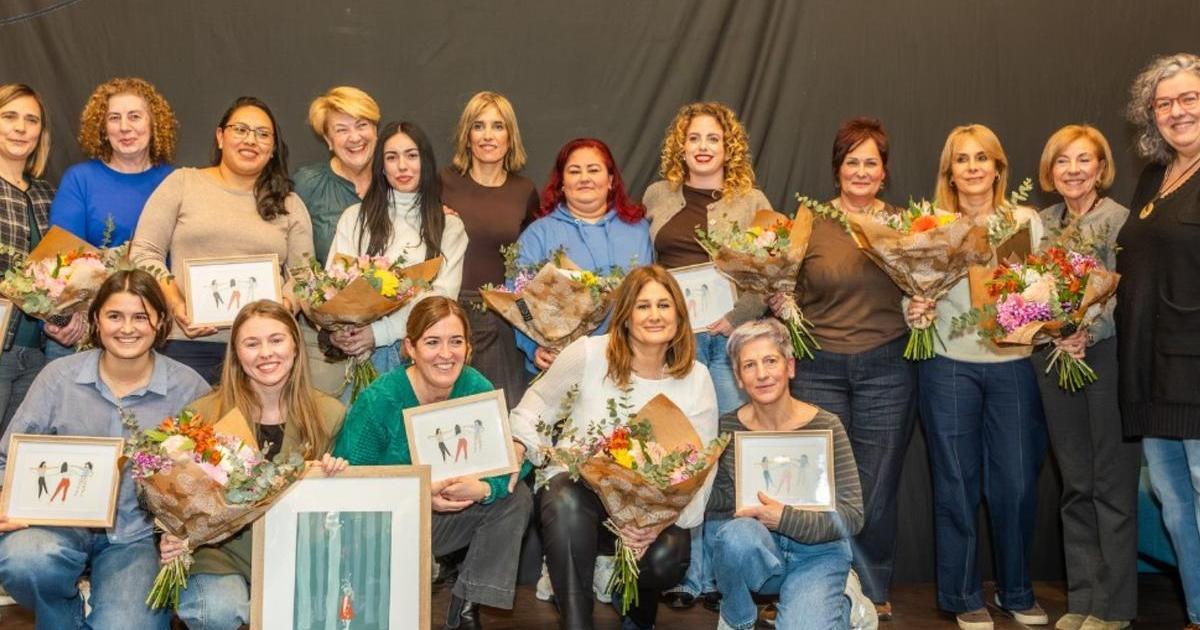 El clímax del evento llegó cuando una docena de trabajadoras subieron al escenario. Las protagonistas de la velada se alzaron en el tablado de la casa de cultura para recibir la obra Amalurra y los recordatorios Hiru Loreak, creados por Elene Tamayo, artista local. También recibieron ramos de flores de la floristería Muxutruk.