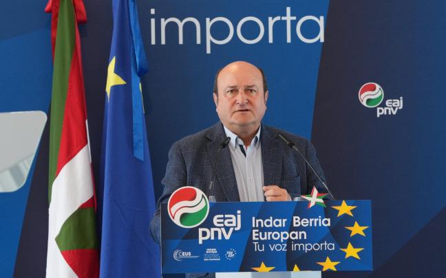 El presidente del PNV ha recordado que Europa "es quien regula en mayor medida nuestras vidas, nuestros derechos y deberes, nuestra economía, nuestra industria, nuestro sector primario" y lo que se decide en Bruselas "es lo que condiciona las leyes de los parlamentos de Madrid o París, de los parlamentos de Gasteiz o Iruña".
