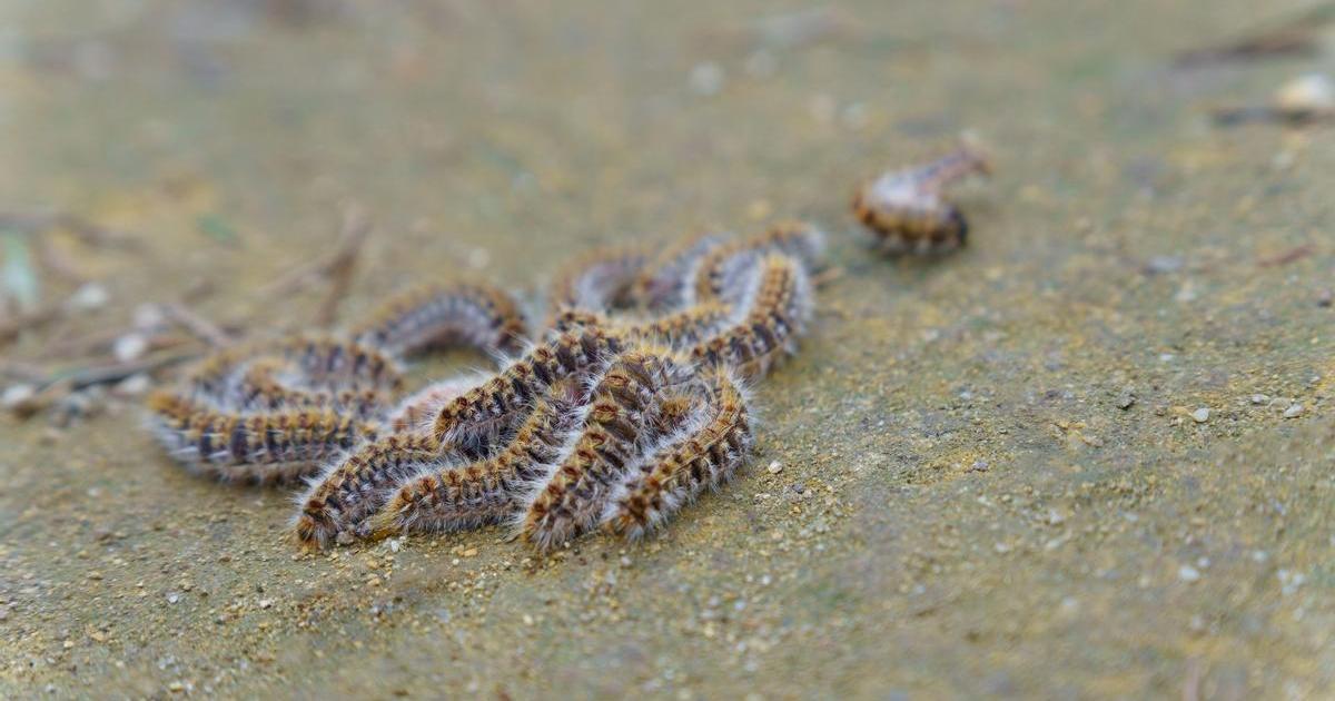 Una fila de orugas procesionarias buscan un lugar donde entrerrarse.