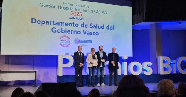 Osakidetza ha sido reconocida con dos galardones en los prestigiosos premios Best In Class (BIC) 2025, situando al sistema sanitario vasco como referente en España. El Departamento de Salud del Gobierno vasco ha recibido el premio a la Mejor Gestión Hospitalaria, mientras que el Servicio de Psiquiatría de la OSI Bilbao-Basurto ha sido galardonado como la Mejor Unidad de Esquizofrenia del Estado.