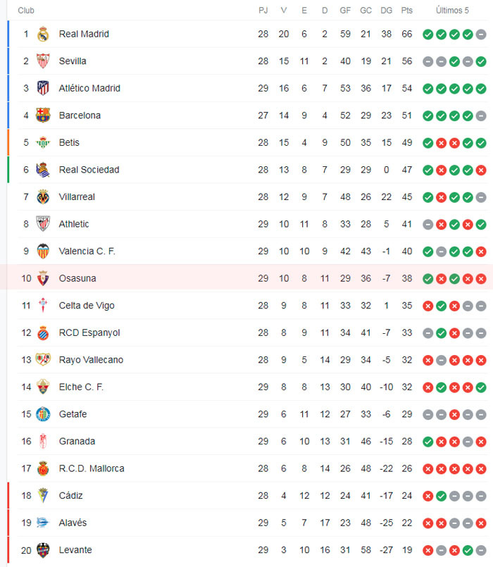 Tras la goleada que encajó el pasado domingo en el Camp Nou (4-0), Osasuna tenía una cuenta pendiente consigo mismo –llegar a los 38 puntos cuanto antes– y con su afición, porque la imagen que ofreció ante el Barcelona distó mucho de la que una semana antes había exhibido en El Sadar para derrotar por la mínima (1-0) a un Villarreal que se ha colado en los cuartos de final de la Champions.