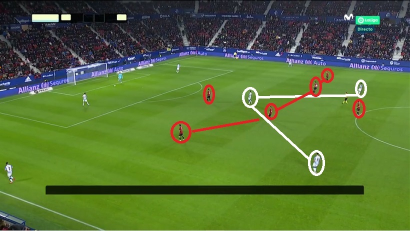 Osasuna corrige bien sobre la marcha, con la excepción de un Brasanac que también estrenaba posición (ala izquierda) en ese minuto: