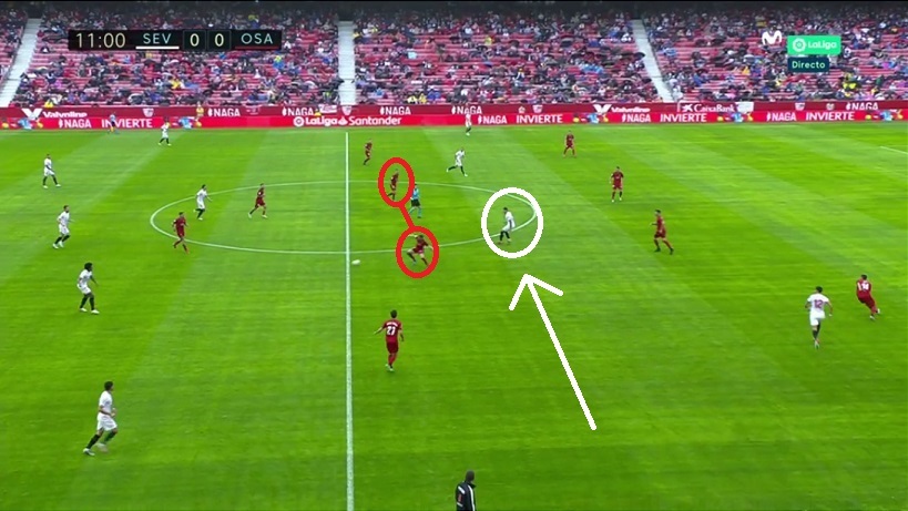 Lo que pasa es que esta disposición de Osasuna se asemejó a la utilizada en el Pizjuán contra el Sevilla... y allí el movimiento fuera-dentro de Lamela le había hecho daño a la espalda de los pivotes.