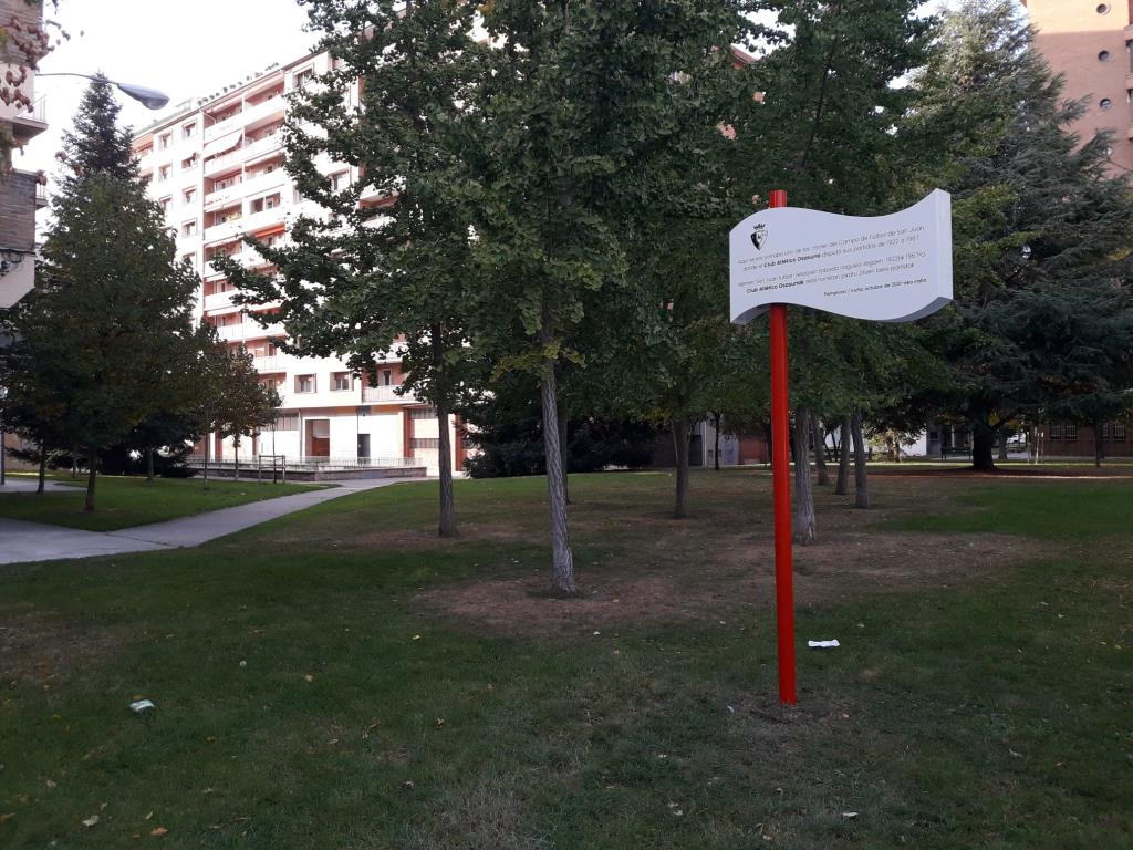 Una vez concluido el acto de la Plaza del Castillo, la delegación osasunista tenía previsto desplazarse hasta el barrio de San Juan. Allí se inaugurará un monolito y un banderín de tres metros de altura que estará ubicado, exactamente, en uno de los córneres del antiguo estadio de Osasuna. Conocer el emplazamiento concreto de este banderín ha sido posible gracias al trabajo realizado por Tracasa Instrumental. Por último, la junta directiva anunció que desplazaría hasta El Sadar, donde se ubicará el último monolito.