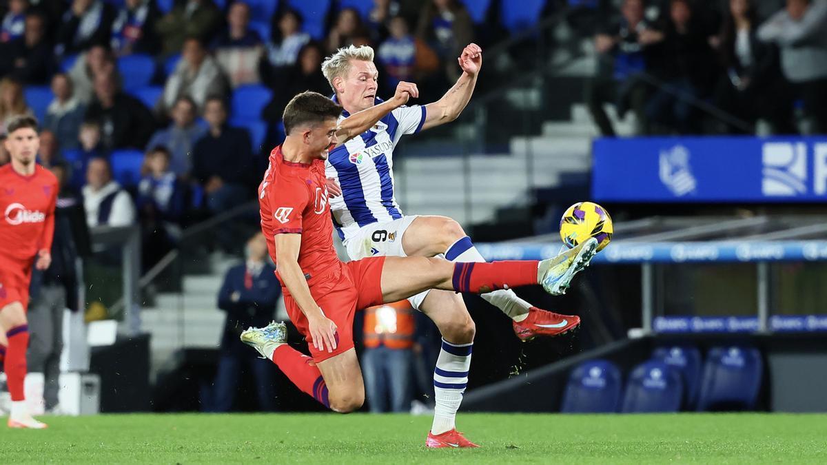 De esta forma, la Real se queda únicamente con la referencia de Mikel Oyarzabal jugando en punta y sin recambio posible. Es curioso que los dos 'nueves' que fichó el club dejándose una buena cantidad de millones, Sadiq y Oskarsson, ninguno vaya a terminar la temporada con el equipo. Sadiq cedido en el Valencia y Oskarsson lesionado.