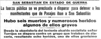 Baina, langile hauen intentzio onak talka egin zuen momentuan ezarrita zegoen Gobernuerekin eta, bortizkeriaz baliatuz, guardia zibilak 7 arrantzale gazte erahil zituen. Otegik adierazi digunez, sarraski hori Euskal Herrian langile mugimendu batean gertaturiko larriena izan zen.
