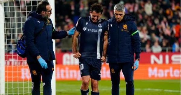 Mikel Oyarzabal se retira lesionado del campo del Girona, el pasado sábado 3 de febrero. / EFE