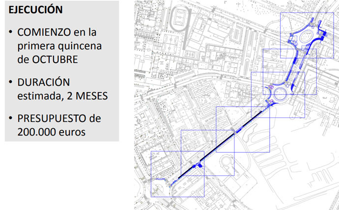 Entre ambas rotondas, se eliminará un carril de circulación en cada sentido y se mantendrán los aparcamientos existentes. Asimismo, se creará un carril bus en el tramo de calzada que, en sentido centro de ciudad, llega a la Plaza de Europa.