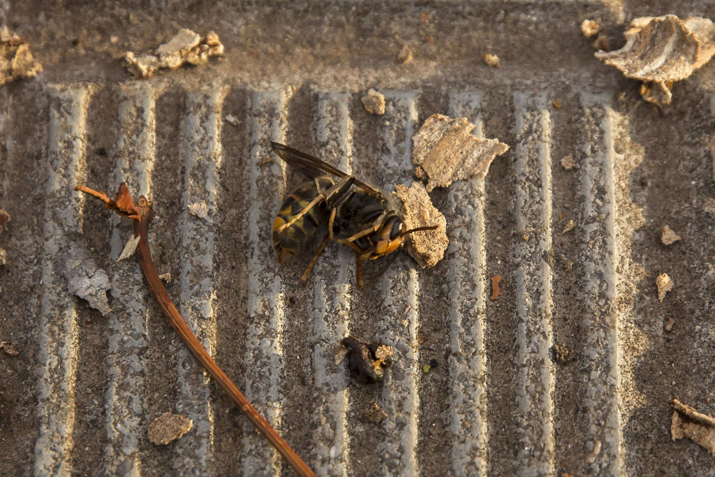 Primer plano de un ejemplar de avispón de gran tamaño.