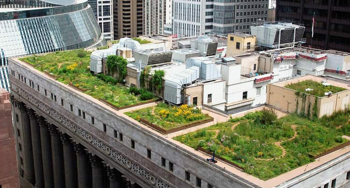 Se instala en los tejados de edificios, que quedan parcial o totalmente cubiertos de vegetación, ya sea en un suelo o en un medio de cultivo apropiado, utilizando tecnologías que mejoran el hábitat o ahorran el consumo de energía.