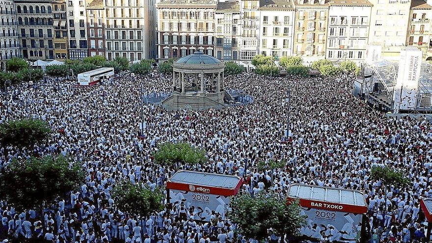 “¿Cómo puede cambiar tanto una plaza en tan pocas horas?”, se preguntaba un matrimonio de ancianos mientras disfrutaba de la soleada mañana del domingo en uno de los pocos bancos que quedan de pie en una Plaza del Castillo que durante este fin de semana ha sido el centro neurálgico del botellón. Para muestra, solo hace falta observar la imagen del auténtico campo minado de vasos rotos, latas y botellas que se tiene que sortear estos días al cruzar el salón de estar de la ciudad cuando la música cesa.