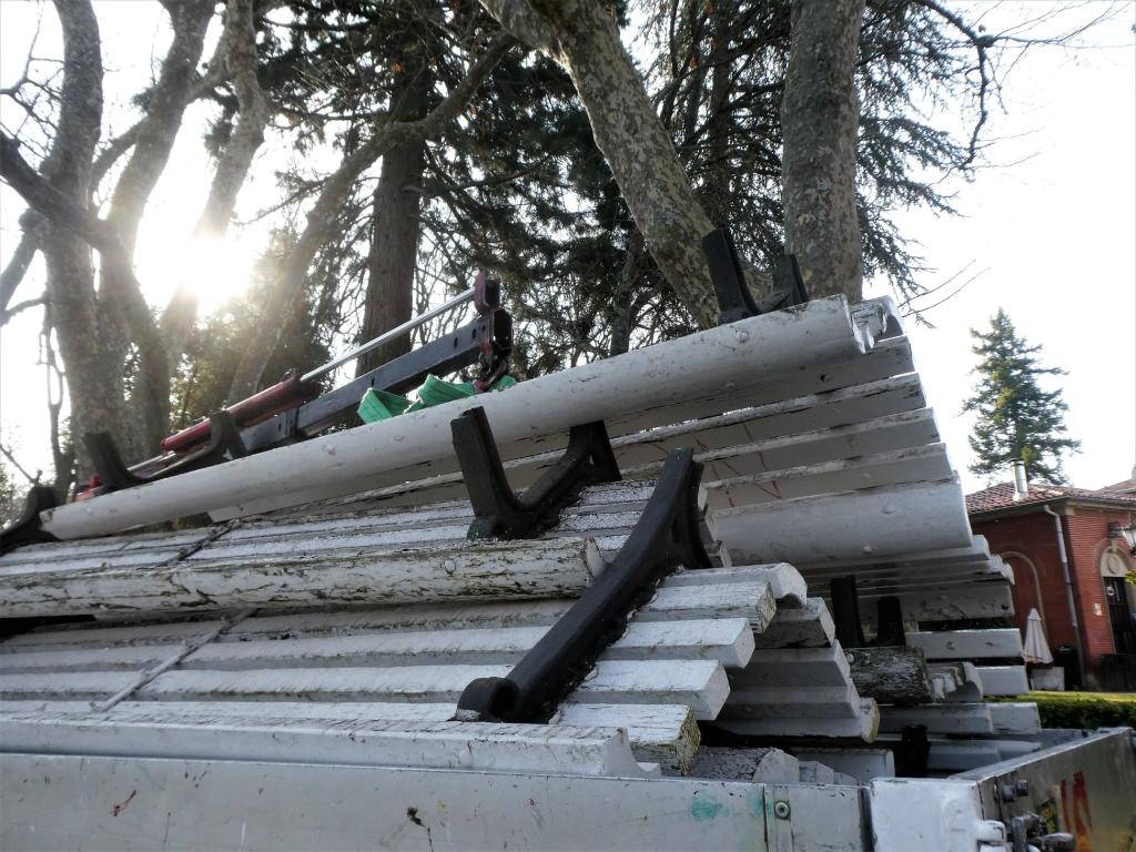 Los bancos, serrados para su retirada. FOTO: JAVIER MURU