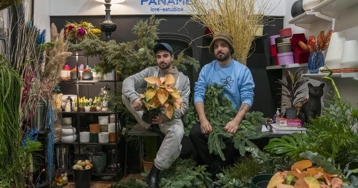 “El producto es perecedero, tiene que entrar y salir, y el ritmo es frenético”, explican estos jóvenes y entusiastas floristas. “Hacemos arte floral, composiciones en las que modificamos los verdes para que no sean los mismos, etc.”, destacan. “Todo está pensado de antes, hay dos personas que están pensando. Por ejemplo, una guirnalda de Navidad para una tienda la tienes que tejer en el lugar, llevar los elementos y ver cómo quedan”.