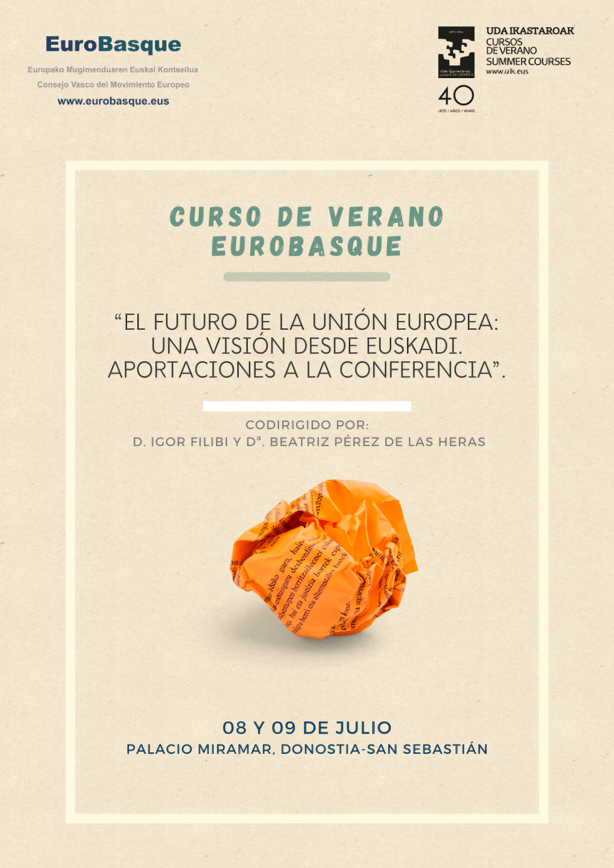 En Donostia se celebra, dentro de los cursos de verano de la UPV/EHU, el curso "El futuro de la UE: una visión desde Euskadi. Aportaciones a la Conferencia" organizado por Eurobasque. Un curso en el que se van a tratar retos comunitarios como los fondos de recuperación o el futuro federal de Europa. En Onda Vasca hemos charlado con la presidenta de Eurobasque, Irune Zuloaga.
