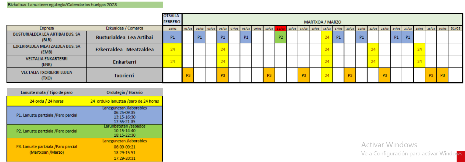A continuación puedes consultar todo el calendario de paros fijados para este mes de marzo por los sindicatos de las diferentes concesionarias de Bizkaibus.