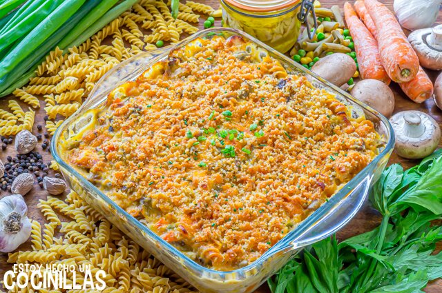 Hoy cocinamos una pasta al horno a la que añadiremos atún y verduras. Una receta con ingredientes al gusto y muy fácil de ejecutar