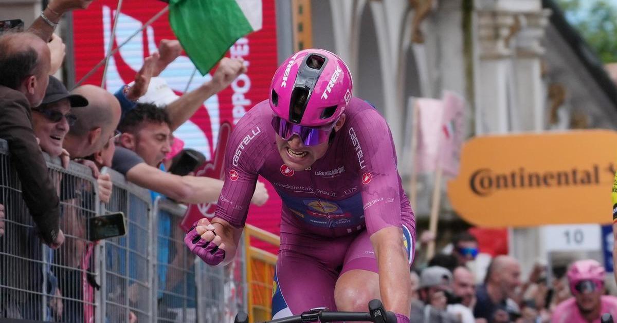 De púrpura, el color ciclamen vistiéndole, Pedersen empuñó su cuarta victoria en el Giro. Una bestialidad. Brutalismo. Con el color del dolor ante la muerte y de la esperanza en la resurrección, se elevó a la gloria en Monte Berico, una llegada que postró a la mayoría.