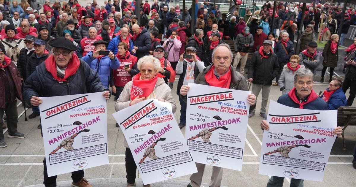 La Coordinadora del Movimiento de Pensionistas de Euskal Herria (MPEH) se reunirá el próximo martes para decidir las próximas movilizaciones en las que exigirán, entre otras medidas, la revalorización de las pensiones en función del incremento del coste de la vida o la equiparación de la pensión mínima con el Salario Mínimo Interprofesional (SMI).