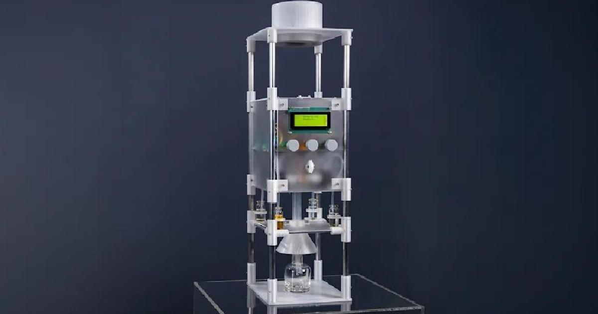 El aparato para hacerlo posible, según describen sus creadores, tiene un aspecto sencillo pero llamativo. Está construido con una estructura de metal y plástico, tiene una pantalla con luz verde neón y tres ruedas giratorias que permiten interactuar con el sistema. En la parte inferior se encuentra un vaso de precipitados para recoger la fragancia final.