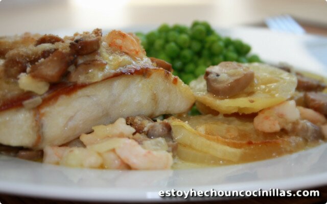 Podemos usar cualquier pescado blanco que nos apetezca: merluza, bacalao, lubina. . . lo haremos al horno con patatas, champiñones y gambas. Lo bueno es que parece “receta de domingo” y, en realidad, se hace casi sola: el horno curra y tú solo vas montando capas y una salsita cremosa que es el truco.