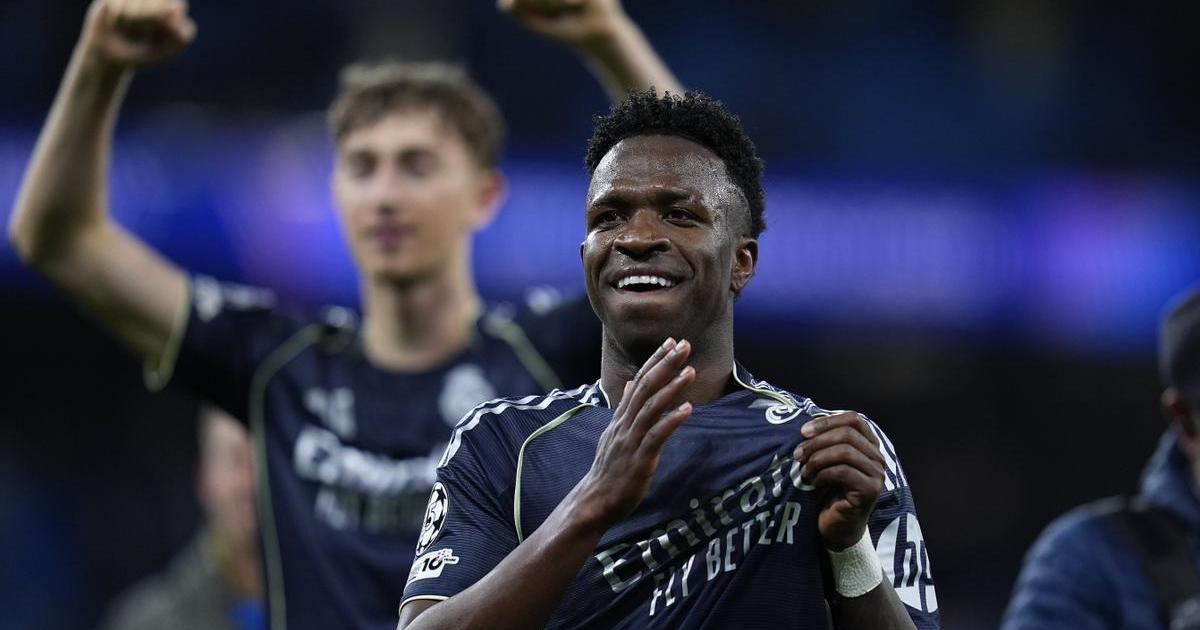Vinicius celebra un gol frente al Manchester City.
