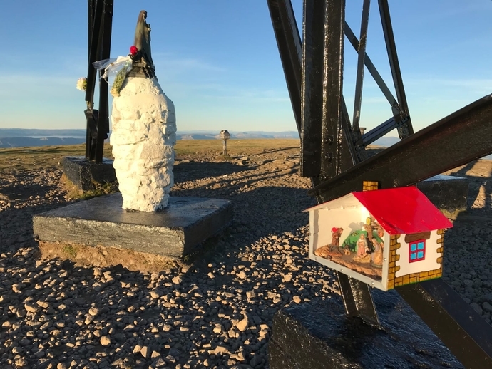 Un pequeño portal de Belén lleva siendo instalado en una de las patas de la Cruz de Gorbeia desde 1970. Fotos: Josu Beltrán 52 años ininterrumpidos