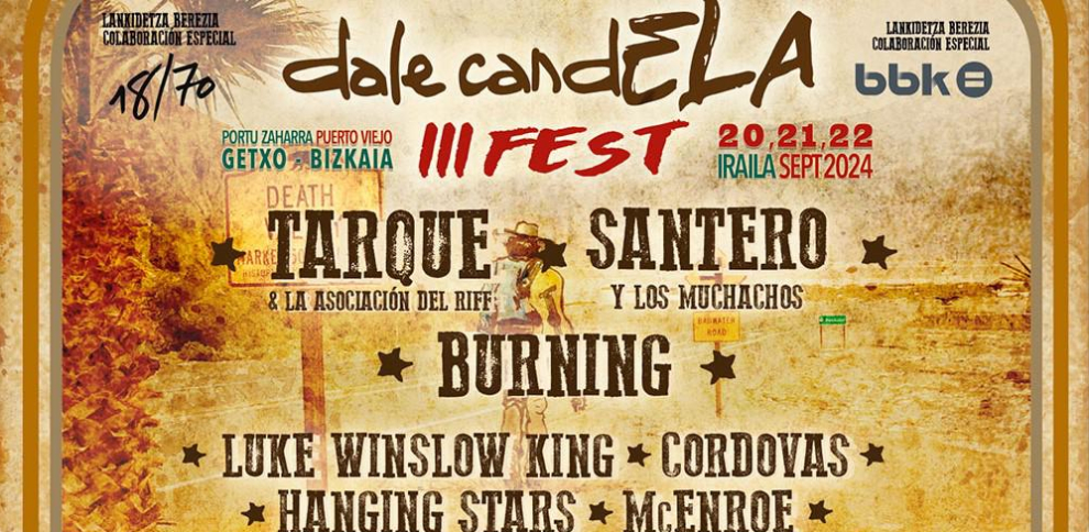 En el programa de hoy hemos repasado como se presenta el 'dalecandELA FEST III'. Tendrá lugar el próximo fin de semana en el puerto viejo de Getxo, viernes, sábado y domingo (20, 21 y 22 de septiembre). También hemos hablado con Álvaro Lafita Zuloaga, miembro de la Asociación dacandELA). Entre otros, tocarán bandas como Burning, Tarque y la Asociación del Riff o Los Brazos.