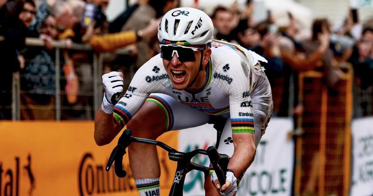 Agitó el esloveno la carrera entre la Cipressa y el Poggio, donde Van der Poel, cedió, y hombreó por el todo o nada con Pidcock en Vía Roma, donde el esloveno se agarró la cabeza, incrédulo ante su hazaña. Tal vez su mejor victoria. Aunque lacerado, desplegó el poder del arcoíris sobre San Remo.