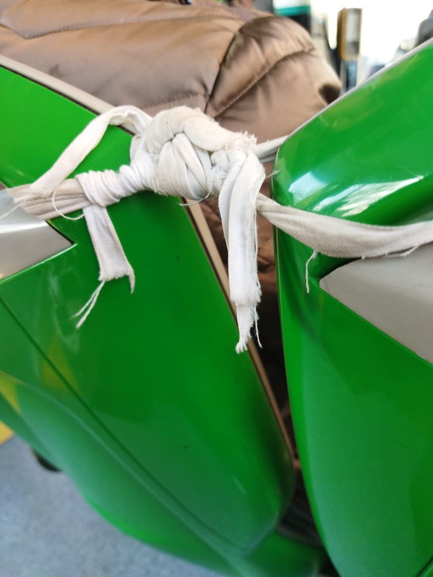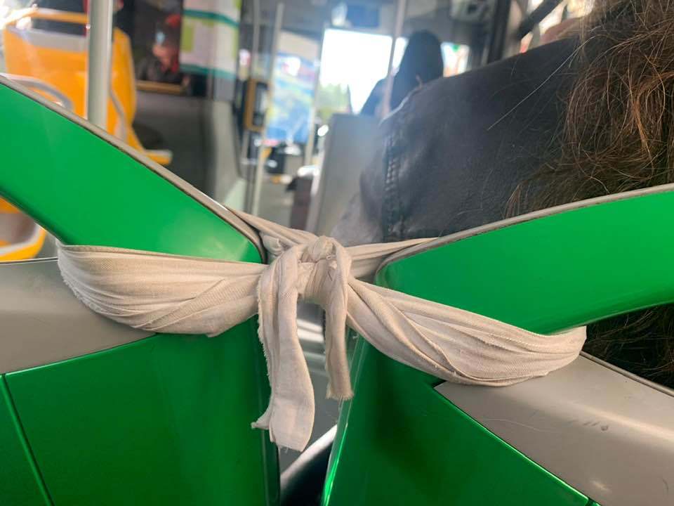 En dichas imágenes se pueden ver dos asientos de un autobús de Tuvisa que están atados literalmente por un trapo blanco.