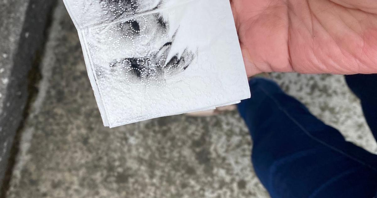 Pañuelo manchado del polvo negro que impregna las calles de Aperribai en Galdakao