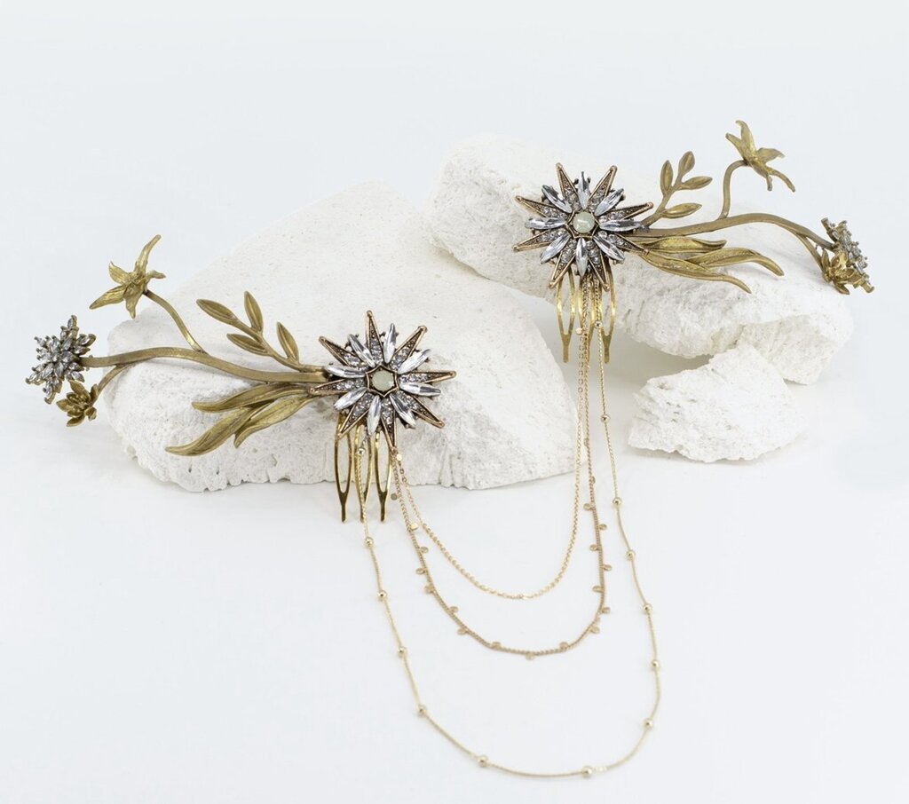 Fue gracias a Instagram, red social en la que iba colgando sus creaciones, donde se fue haciendo hueco en este mundo. "Me empezaron a escribir y a hacer encargos. La verdad es que no sabía nada hasta entonces; veía algo e intentaba replicarlo. Empecé con tocados de porcelana y después con diademas con abalorios, más pensadas para las invitadas, para terminar dando el salto a las novias y a los tocados joya que ya requieren de soldadura".