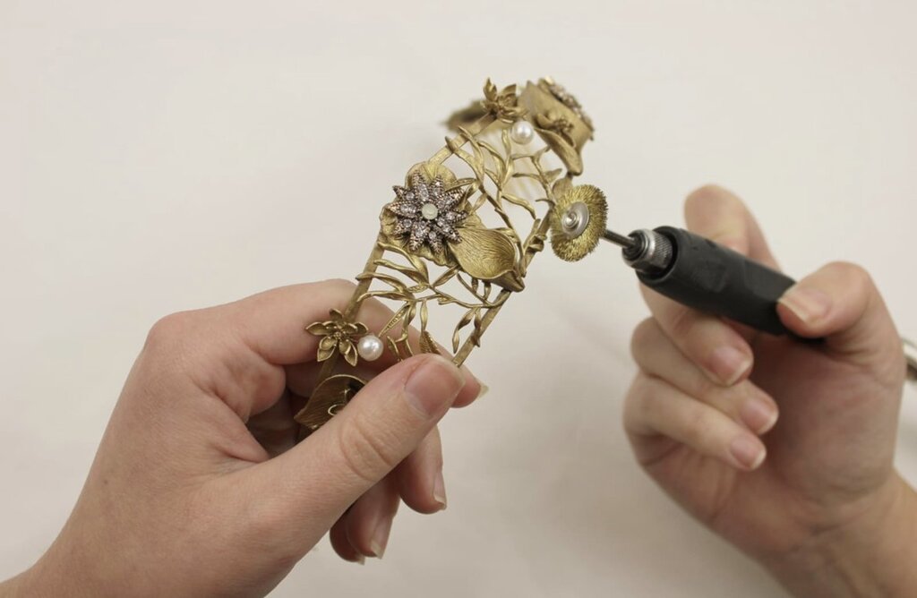 Los tocados de las invitadas "son más sencillos" pero los de las novias requieren de un proceso que puede alargarse hasta dos meses. "Vienen aquí o hacemos reuniones online, hablamos, vemos su estilo, el vestido, la cara y el peinado. Muchas veces vienen con alguna idea en fotografía y lo adapto, no lo replico, y otras veces partimos de cero y es mucho más bonito". Ella, cuenta, hace un dibujo y después un prototipo que no suelda y que se puede manipular pero que "sirve para hacerse una idea".
