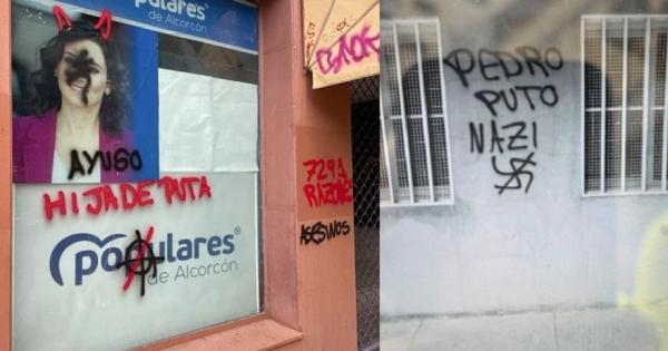 PP y Vox han denunciado a través de sus redes sociales el ataque que sufrieron sus respectivas sedes en Alcorcón (Madrid) entre el martes y el miércoles de esta semana, cuyas paredes y cristales aparecieron llenos de pintadas con símbolos anarquistas o símbolos nazis tachados.