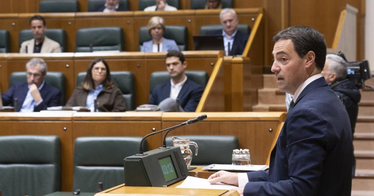 El lehendakari Imanol Pradales durante una de sus respuestas a las preguntas de los grupos en el pleno de control del Parlamento Vasco / EP