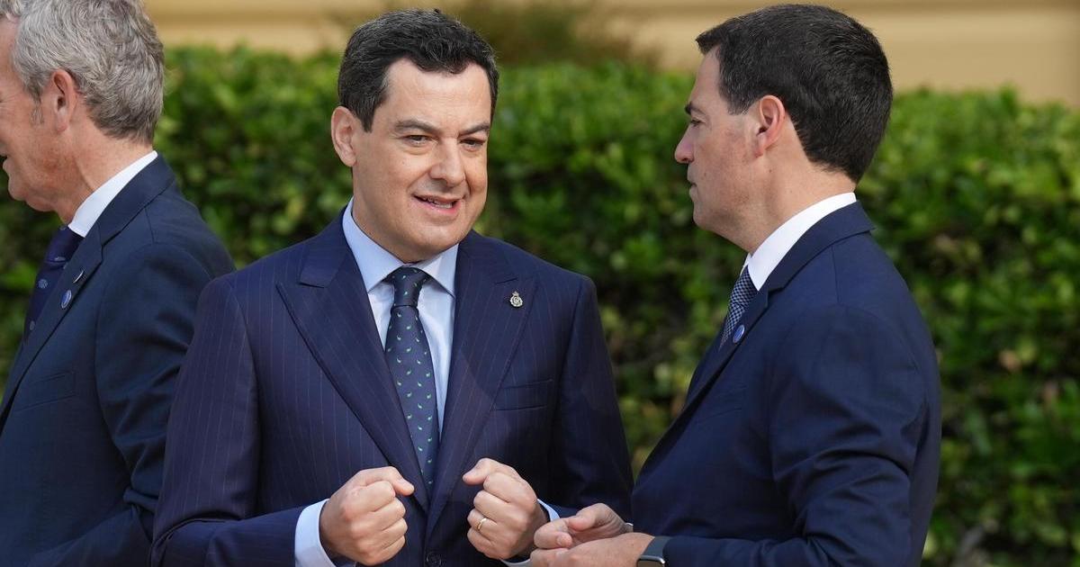 Moreno Bonilla e Imanol Pradales charlan a su llegada a la Conferencia de Presidentes celebrada en junio en Barcelona. / EP