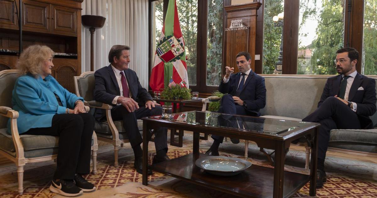 El regreso del republicano Donald Trump a la presidencia de Estados Unidos, con un programa basado en el aislamiento económico y los aranceles, arrojó muchas sombras sobre la posibilidad de mantener las relaciones comerciales con el país. Sin embargo, el lehendakari Pradales lleva más de un año asegurando que, por encima del ruido, de los aranceles y de quién ocupe en cada momento el despacho de la Casa Blanca, es posible mantener los puentes, sobre todo, aprovechando el margen de autonomía que tienen los estados federados, o el interés que muestran los representantes institucionales de origen vasco. Y este lunes pudo exhibir una prueba concreta de este interés mutuo con la visita a Ajuria Enea del congresista por California John Garamendi. Este representante tiene orígenes vascos (su abuelo nació en Ispaster) y también tenía que acudir a recoger el premio Hitz Sariak de Grupo Noticias.
