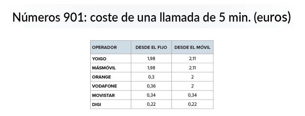El 901 es un prefijo utilizado habitualmente por la Administración Pública como la Agencia Tributaria o la Seguridad Social. Las tarifas de las llamadas a un 901 no son gratuitas ni baratas. Además, los precios de las llamadas a estos números se han encarecido y resultan ahora muy elevados en comparación con la mayor parte de las compañías y, especialmente, si llamas desde un móvil.