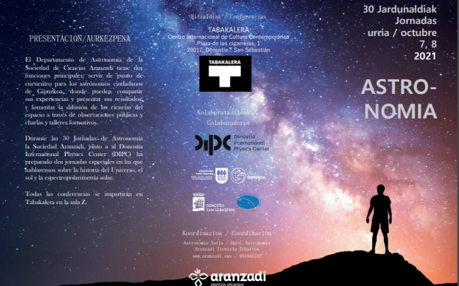 Urriaren 7 eta 8an Aranzadi Zientzia Elkarteak Galaxiari buruzko hitzaldiak eskainiko ditu Donostiako Tabakaleran