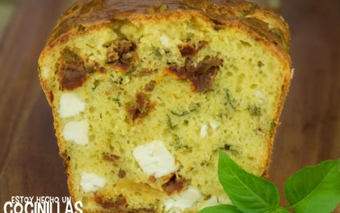 Bizcocho salado de tomate seco, feta y albahaca