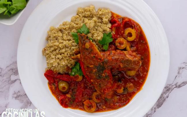 Caballa con salsa de tomate y aceitunas