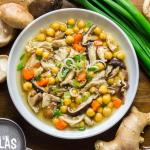 El pollo desmigado y los níscalos van a hacer de estos garbanzos un plato completo y riquísimo