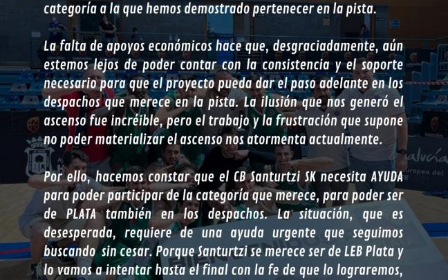 El CB Santurtzi SK pide ayuda