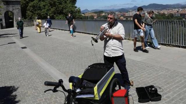 David Orduña, profesor de la escuela de música de Barañain, recorre Europa con una trompeta, una mesa de mezclas y una…