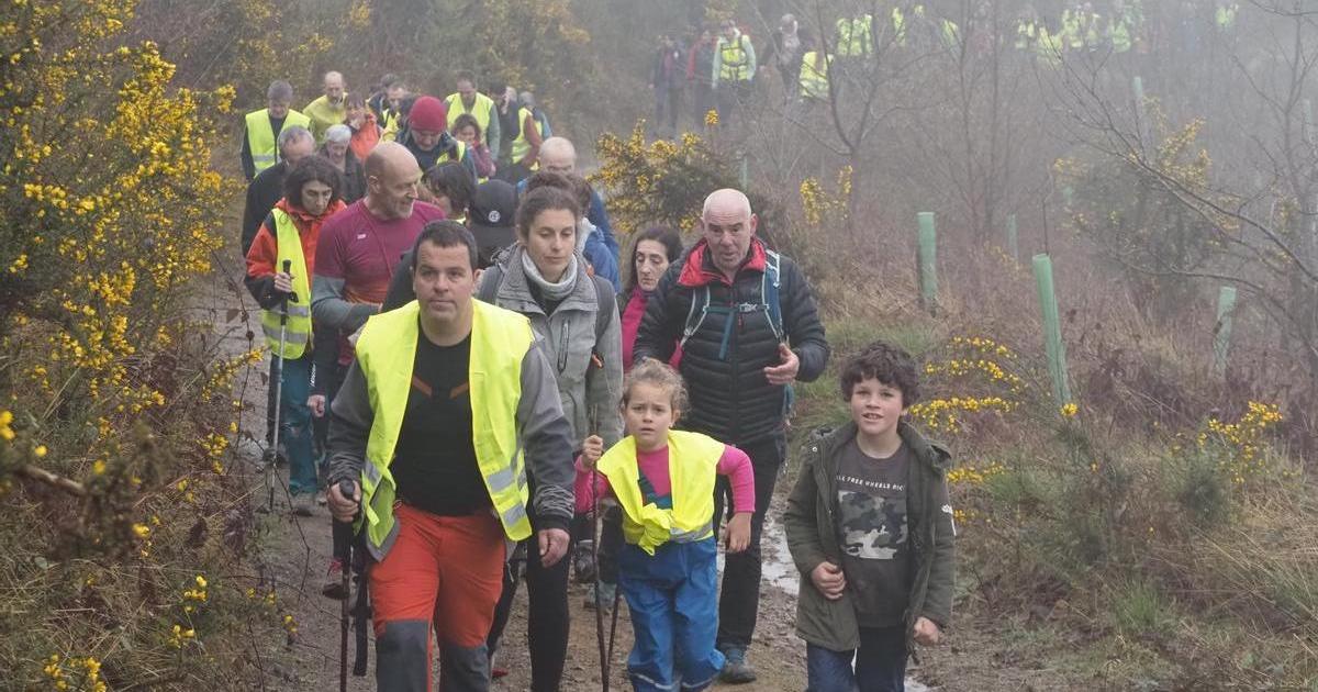 Pertrechados contra la lluvia, se han encaminado en tres columnas desde Eibar, Soraluze y Elgeta hasta el enclave en el que la empresa Arena Power Solar 10 SLU contempla instalar uno de los seis aerogeneradores que componen el proyecto.