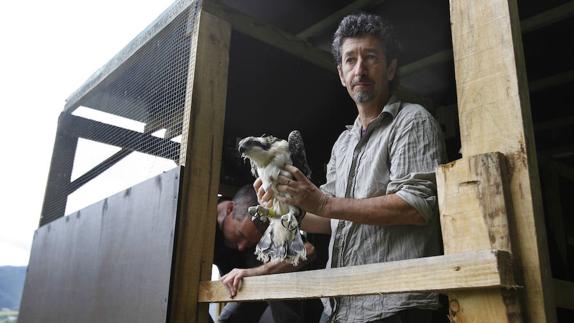 Gorka Belamendia invita hoy a Aitor Galarza, responsable del proyecto de reintroducción del águila pescadora en Urdaibai